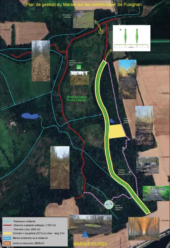 À tort, André Pautet a laissé 2 000 000 m3 du TGV de jonc remblayer ce marais jusqu’à 7m de hauteur ecoside. À ce jour cette partie est enroncée et nous proposons le projet suivant en accord avec le CEN 38. C’est à dire à nouveau mettre des animaux sur les mauvais prés (ferme pédagogique, fondation et corridors).